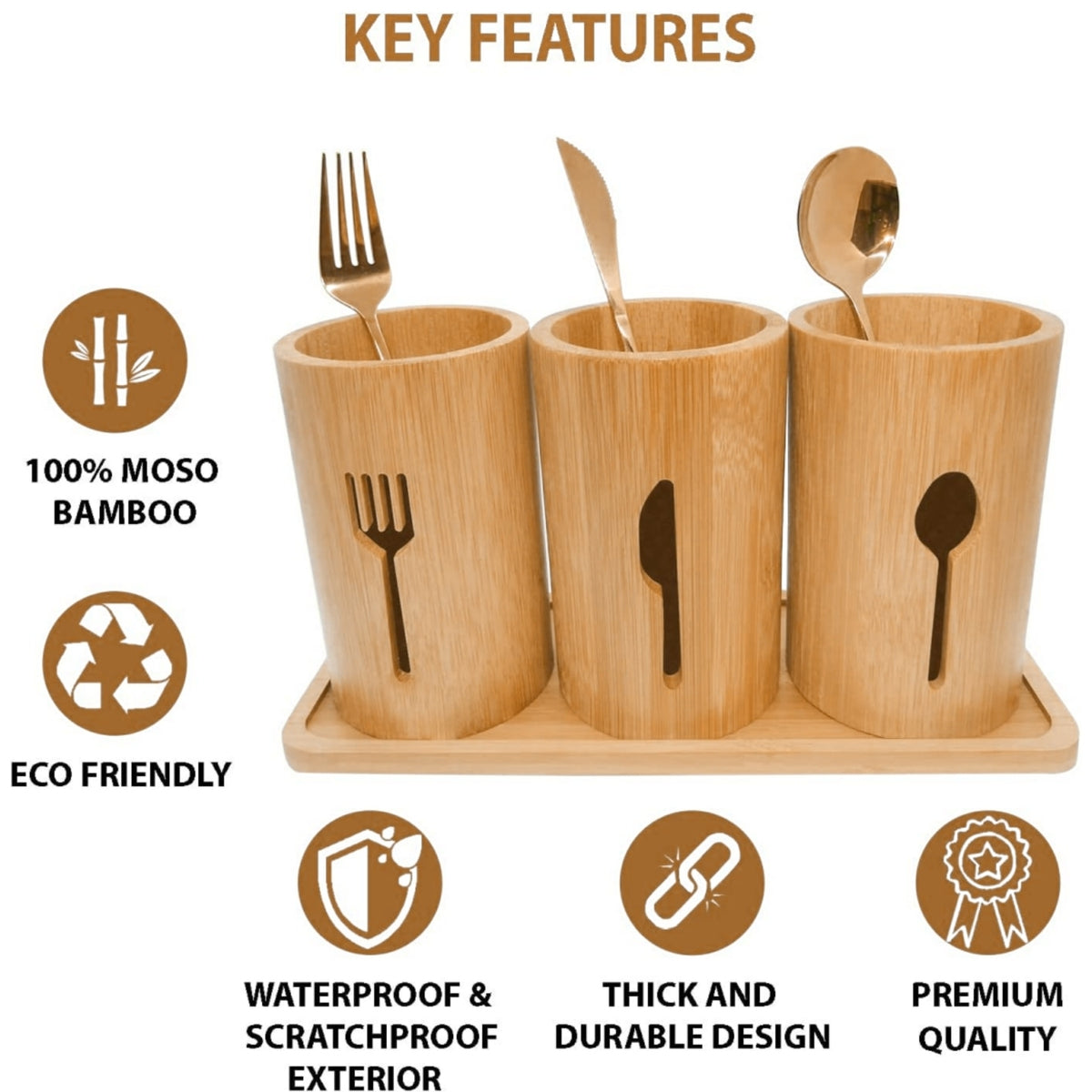 منظم أدوات المائدة الخشبي (بامبو) - حل 3 في 1 لترتيب المطبخ
