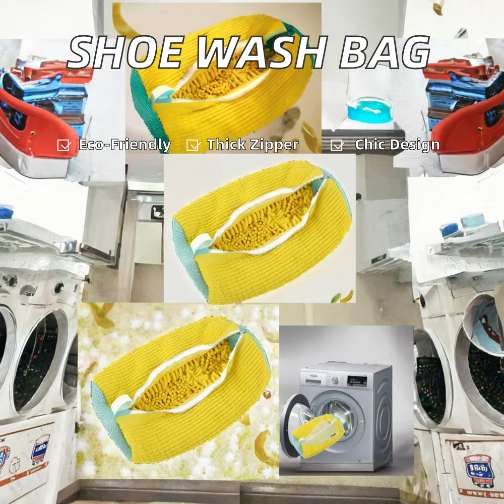 بنقدم لك شنطة الغسيل المتطورة المبطنة بأكتر من 12,000 ليفة ميكروفيبر دقيقة. الشنطة دي بتشتغل كفرشة عملاقة جوه الغسالة، بتنظف الكوتشي من كل الاتجاهات (360 درجة) وبتحميه من الصدمات والتشوه، عشان تطلعي الأحذية زي الجديدة تماماً وبأقل مجهود.