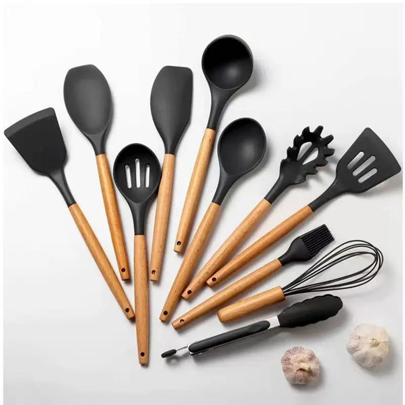 طقم أدوات مطبخ من الخشب والسيليكون – فخامة وأناقة