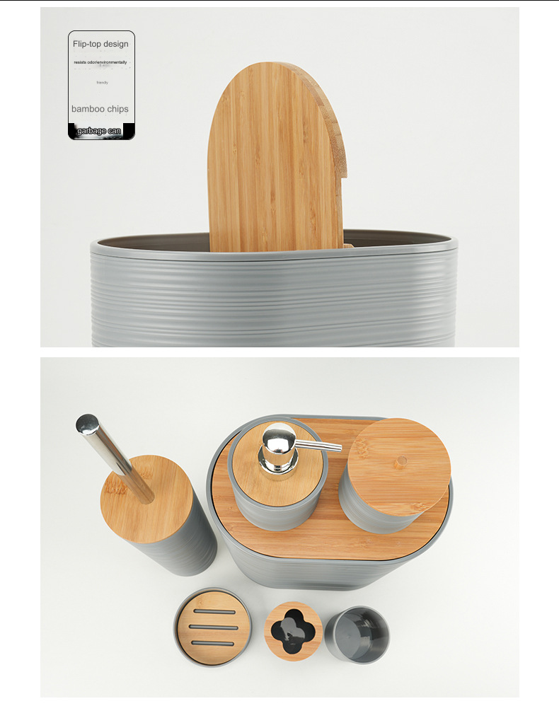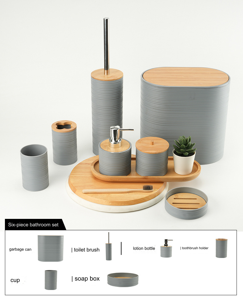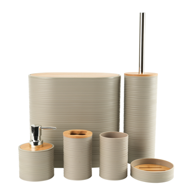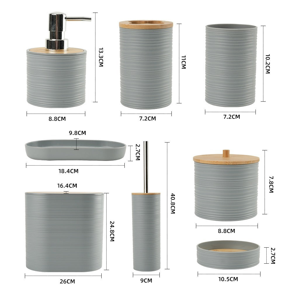 طقم الحمام العصري 8 قطع – أناقة الخيزران والجودة الحرارية