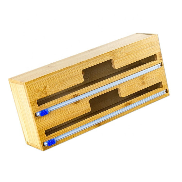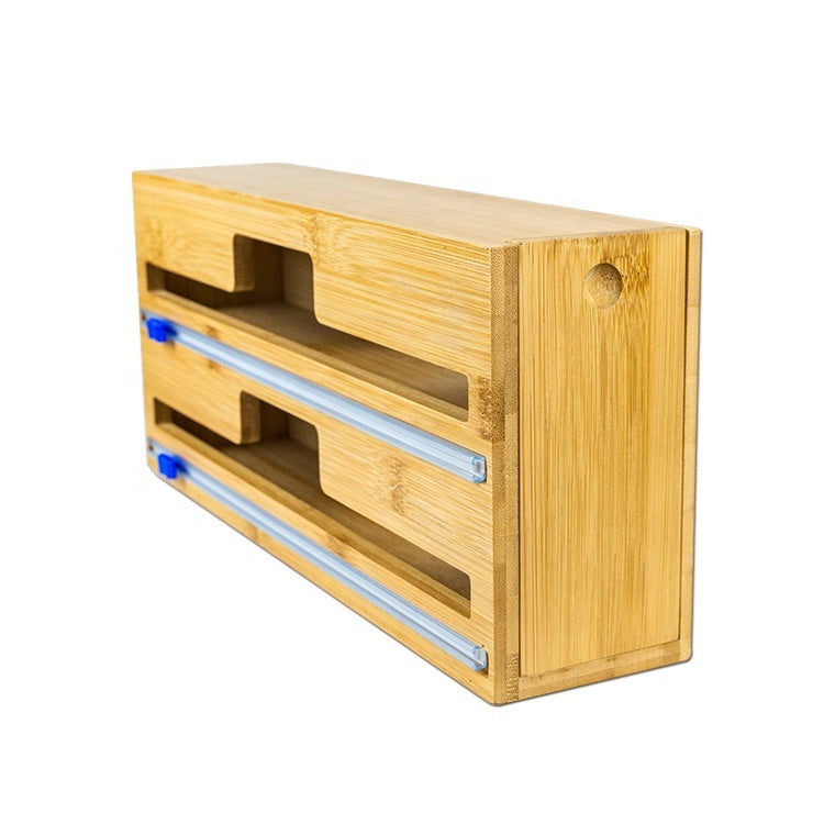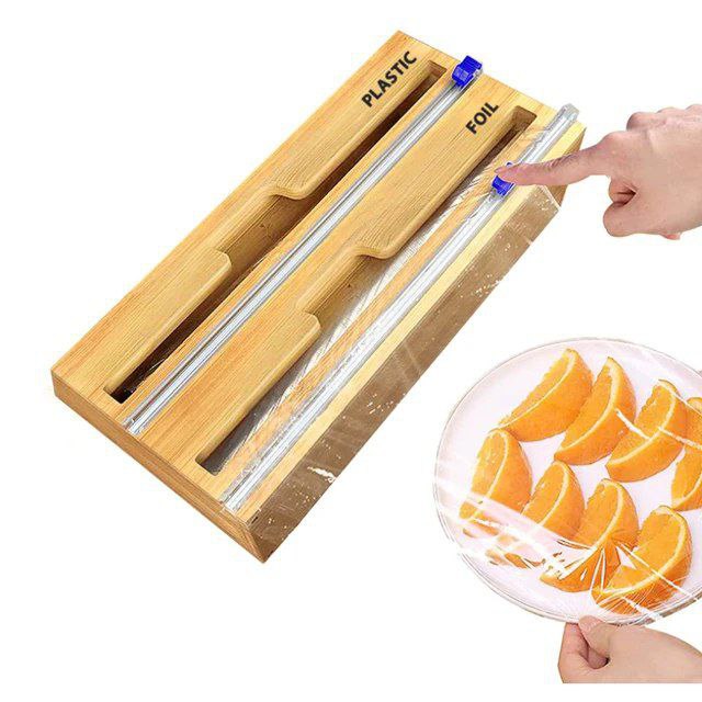 منظم وموزع لفافات المطبخ الخشبي - حل 2 في 1