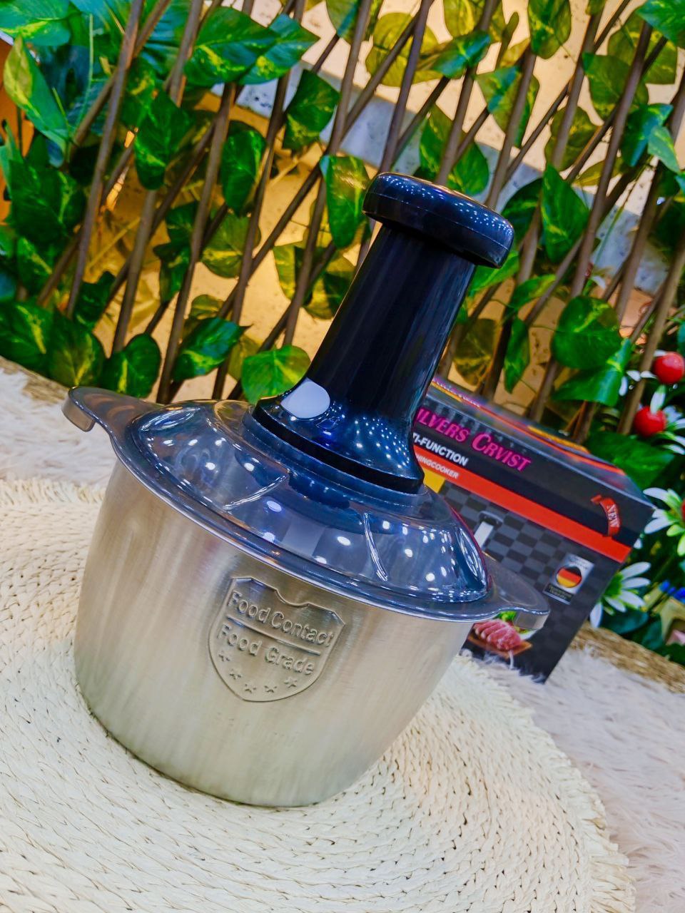 كبة الضغط اليدوية (2 لتر) بحلة استانلس – فرم احترافي للخضروات بدون كهرباء