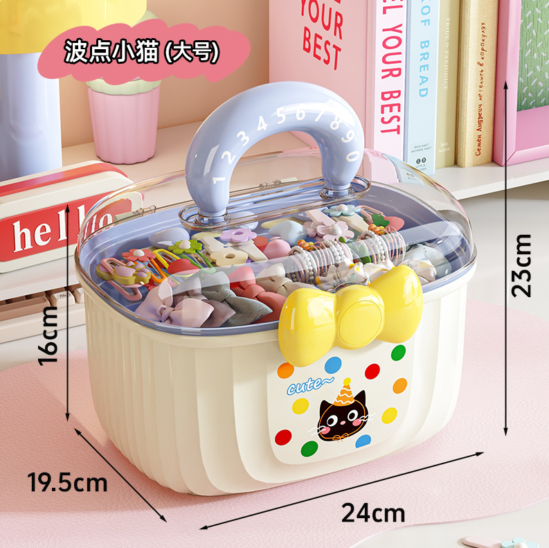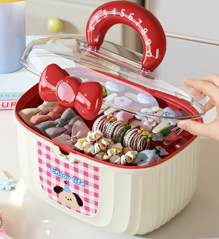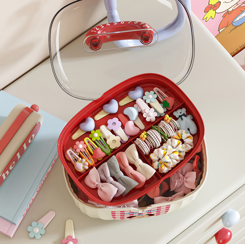 وداعاً لفوضى التوك والإكسسوارات! صندوق تخزين سعة كبيرة، بتصميم كرتوني لطيف ومقبض متين، مثالي لحفظ جميع توك الشعر والمشابك والإكسسوارات في مكان واحد منظم.