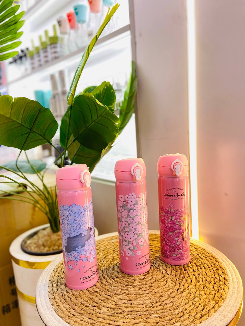 مج حراري بينك شيك بطباعة مميزة (عملي طول السنة)