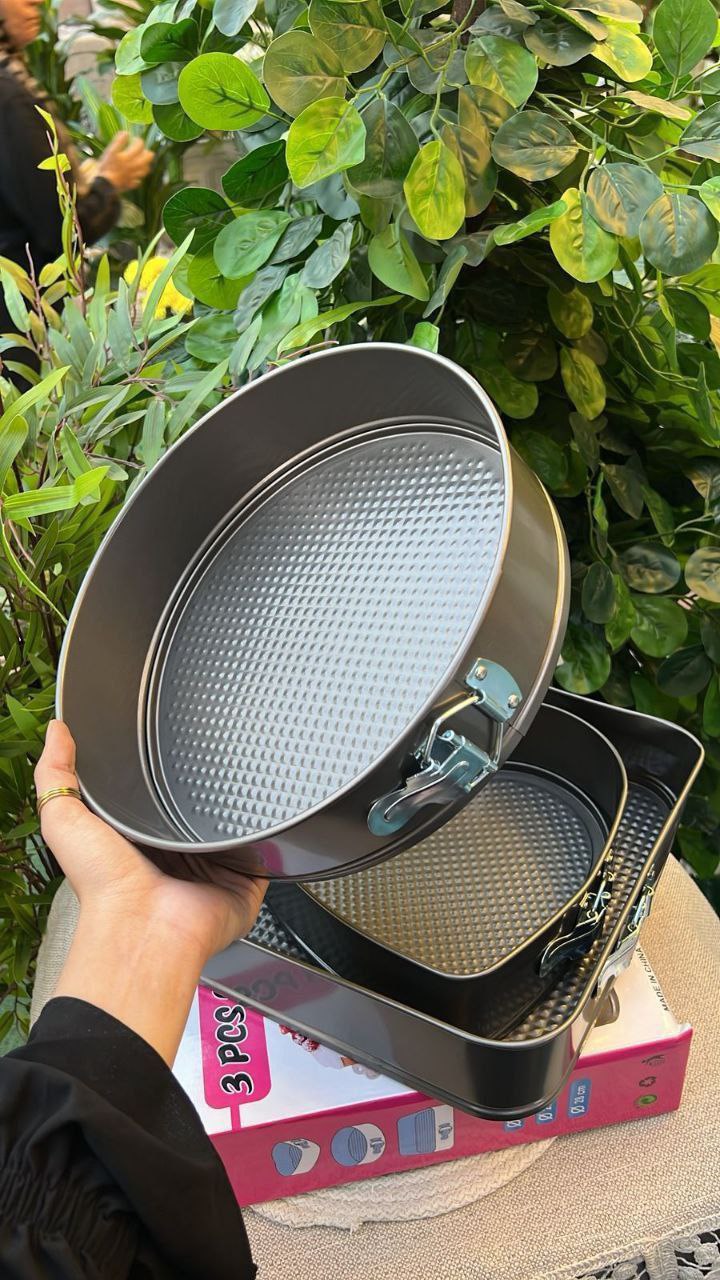 - الخاصية المميزة: القوالب قابلة للفك (Springform Pan) عشان التشيز كيك والتورتات.