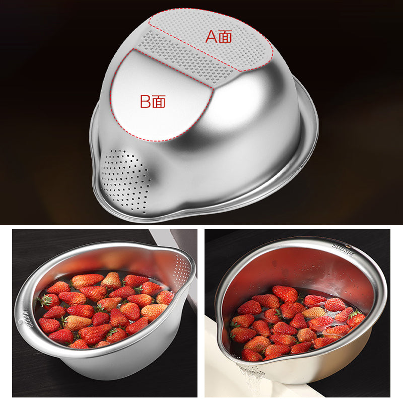 - متعدد الاستخدام: مثالي لغسيل الرز، الخضار، الفاكهة، والبقوليات، ويمكن استخدامه أيضاً كوعاء خلط.